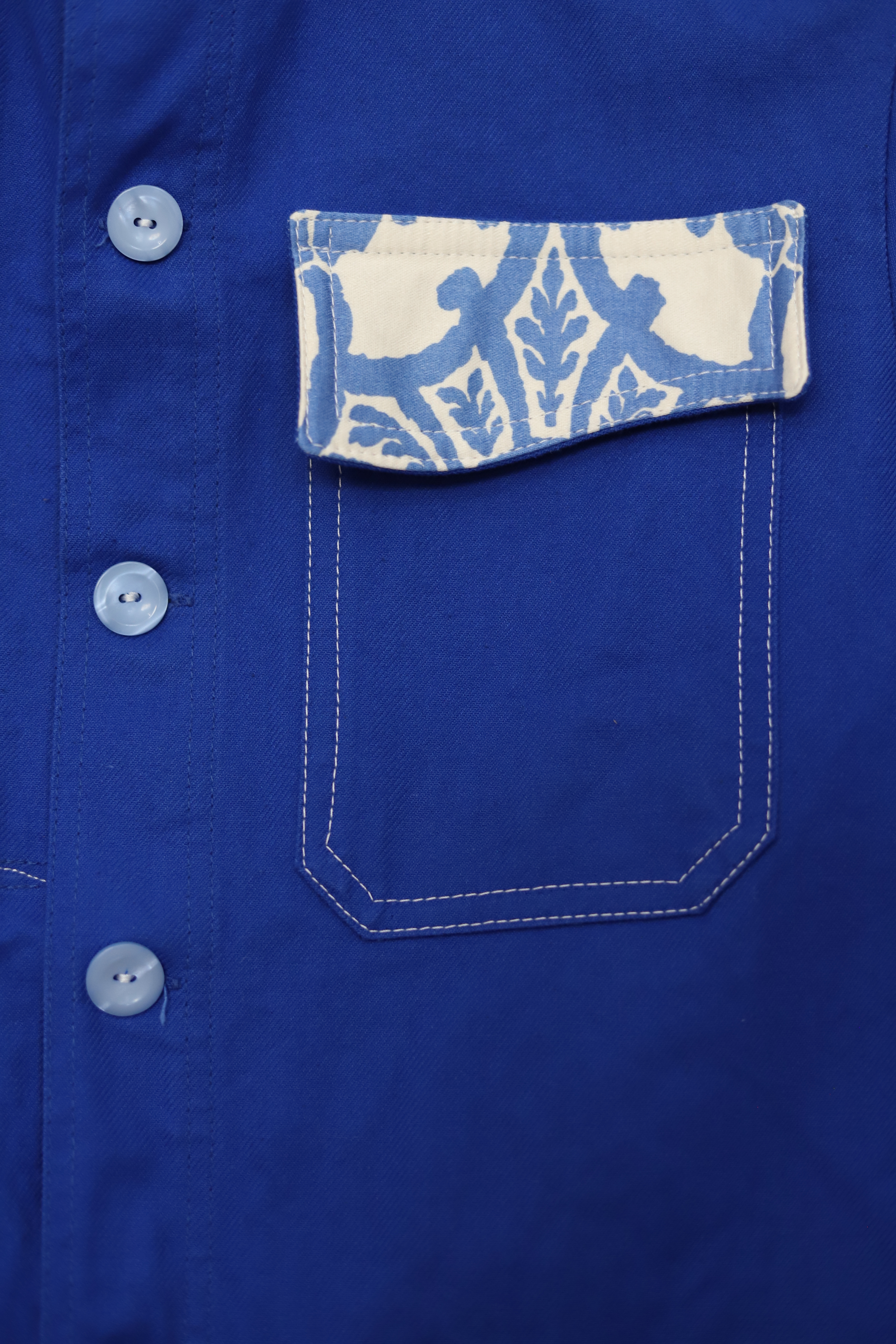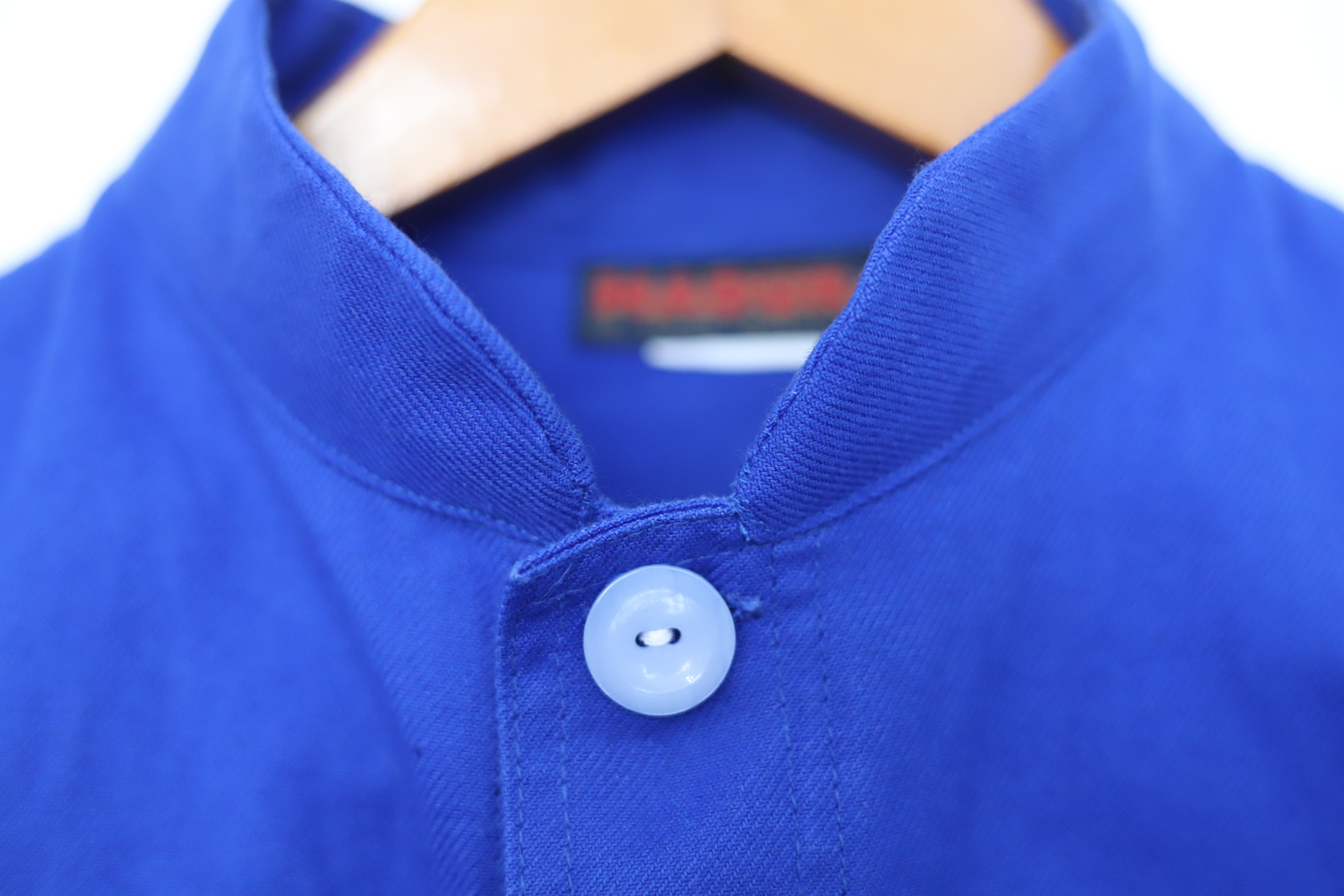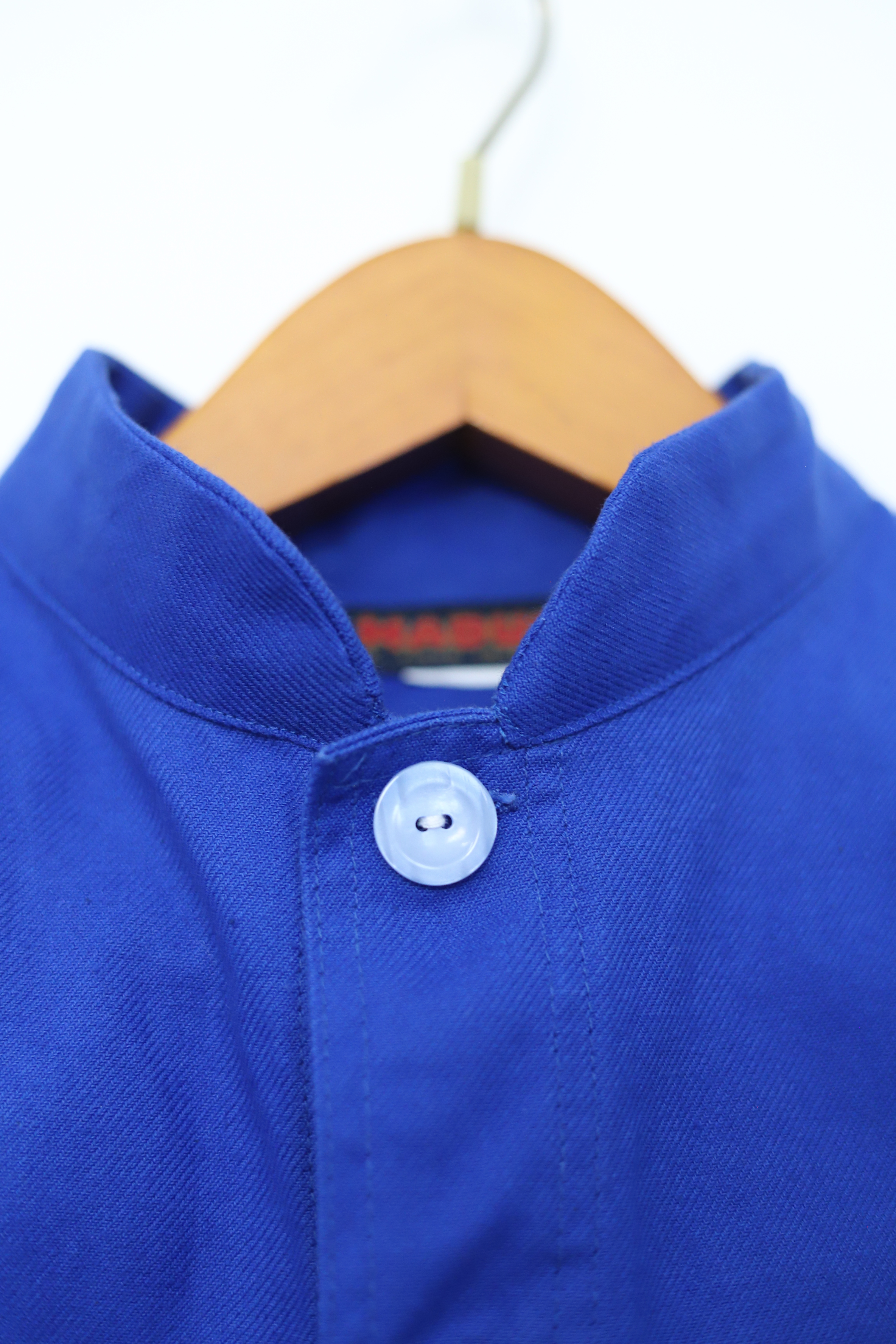 Une veste bleu de travail de couleur bleu